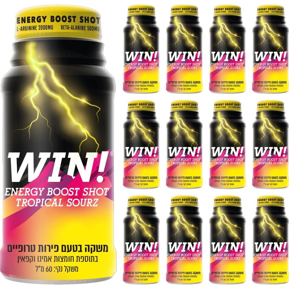 משקה אנרגיה WIN ENERGY BOOST בטעם פירות טרופיים – מארז של 12 בקבוקים.